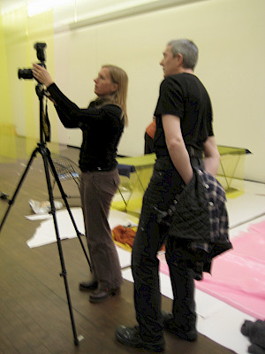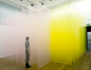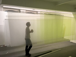 Textil-Installation: Farbraum lichtgelb-rosaAusstellung